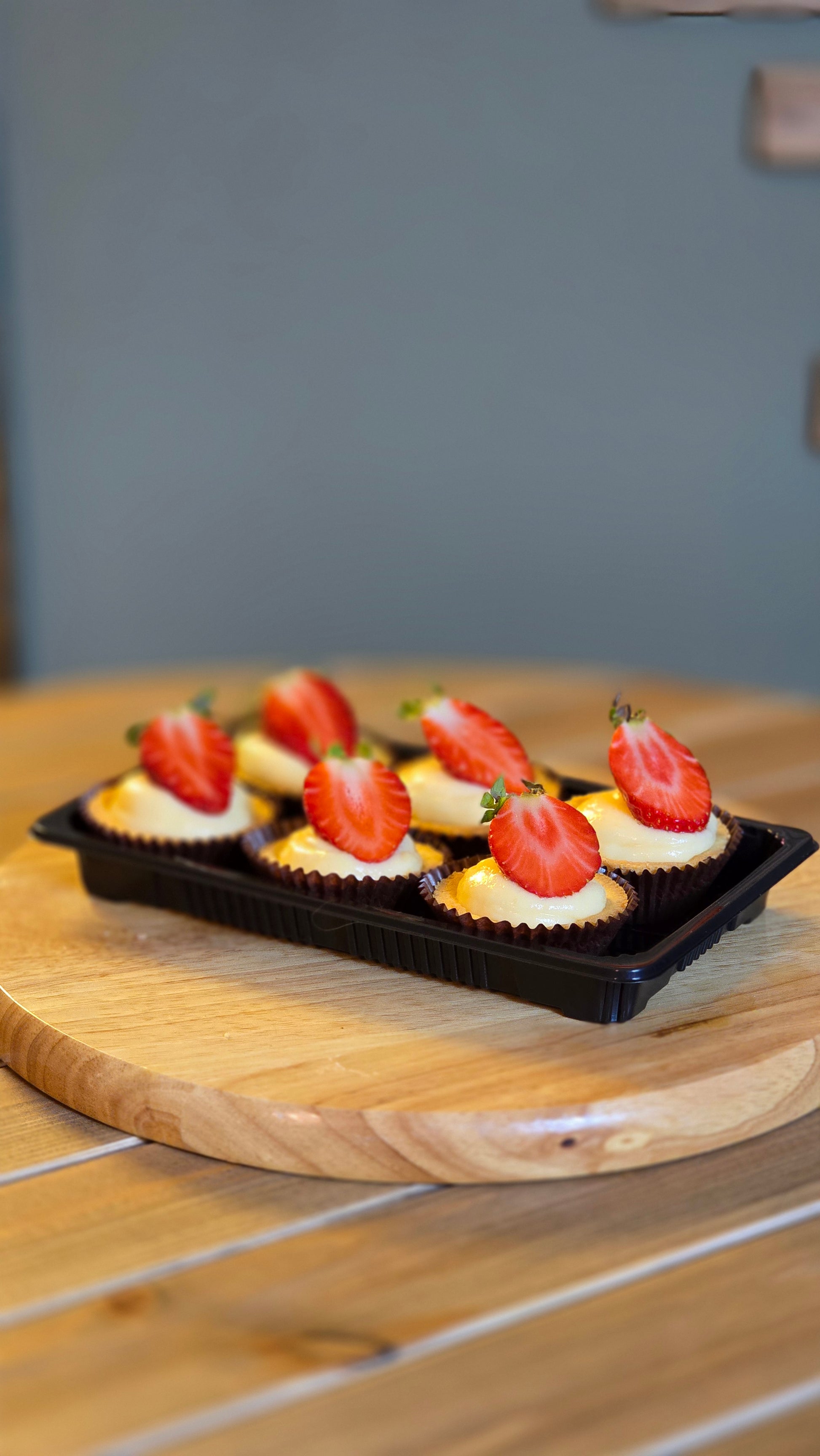 Natural butter base tarts with homemade cream patisserie and fresh strawberries.